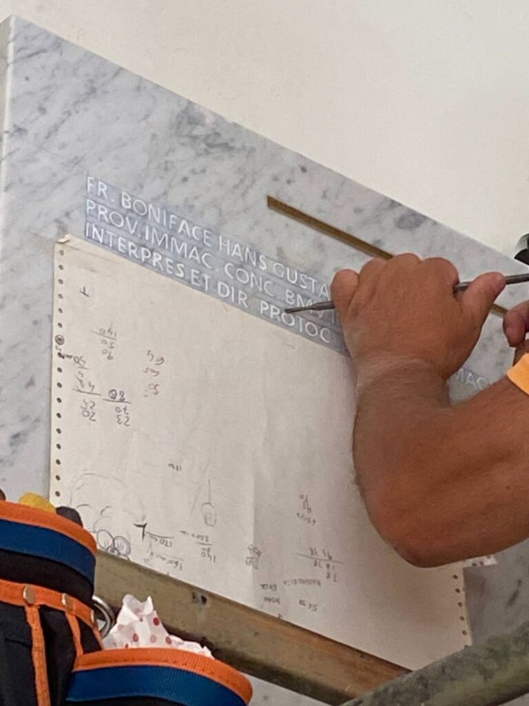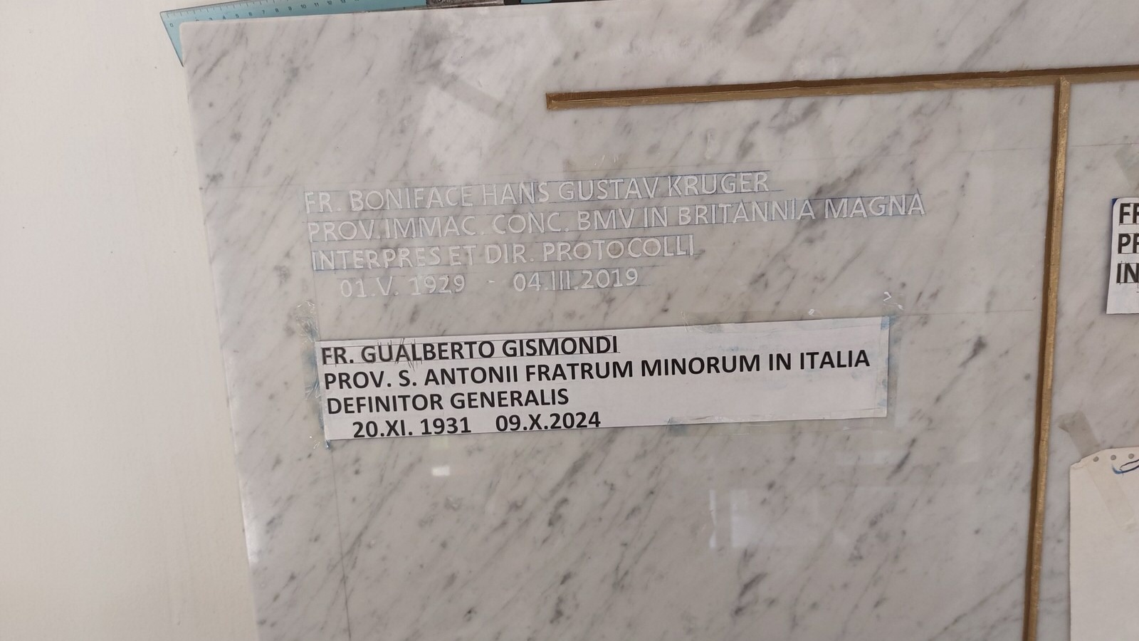Posted on 21st September 202521st September 2025 by RobertoIncisione a mano targhe in marmo Incisione a mano targhe in marmo presso la Curia dei Frati Minori a Roma.